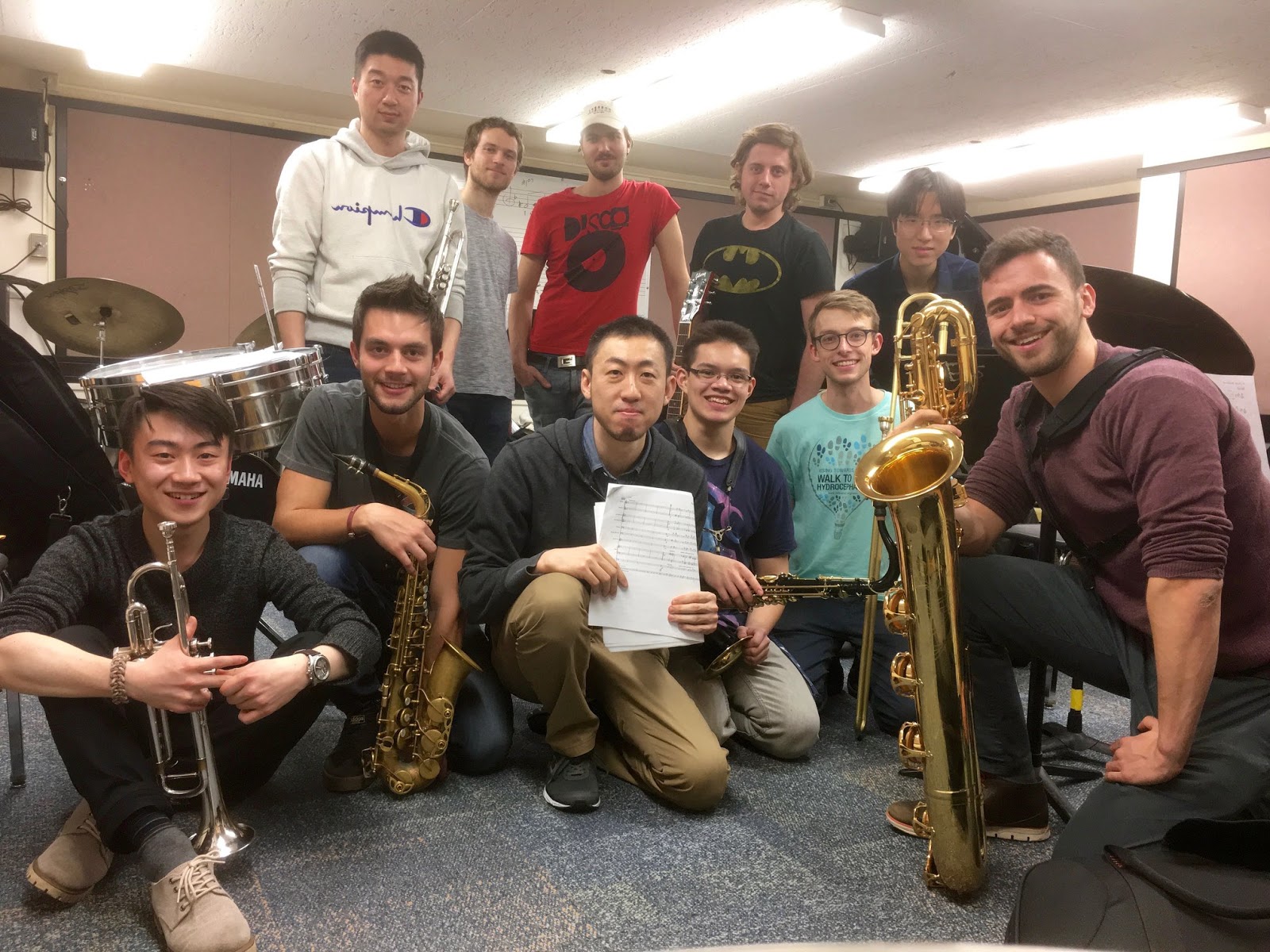 with my 6 horn band members at rehearsal.
